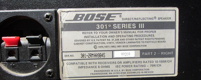 Loa Bose chính hãng: Mặt dưới màng loa (cone) hoặc trên củ loa thường có in số series và mã số lắp ráp rõ ràng. Bên trong thùng loa, trên các vách gỗ, cũng có thể có series hoặc ký hiệu riêng.