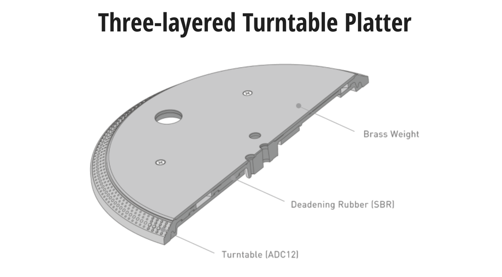 Kế đến phần đĩa platter 3 lớp với hiệu suất giảm rung cao cũng sẽ giúp việc tracking không bị ảnh hưởng và xáo trộn. Các kĩ sư của Technics chia sẻ rằng mỗi đĩa platter này đều được điều chỉnh riêng để giúp cân bằng tối đa, được cấu tạo kết hợp giữa nhôm và thau, bề mặt phủ lớp cao su "chết".