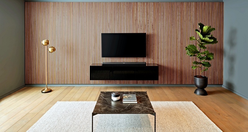 Với kích thước của mình, Panorama 3 có thể được đặt trên chiếc kệ phía dưới TV mà không che mất khung hình, hay nếu người dùng muốn gắn thiết bị lên tường, Bowers & Wilkins cũng cung cấp sẵn 1 chiếc giá treo tường bằng kim loại. Việc kết nối cũng rất đơn giản: chỉ cần 1 kết nối ARC / eARC HDMI là Panorama 3 sẵn sàng liên kết với TV và chia sẻ âm thanh từ bất kỳ nguồn nào khác như Set-top box hay máy chơi game.