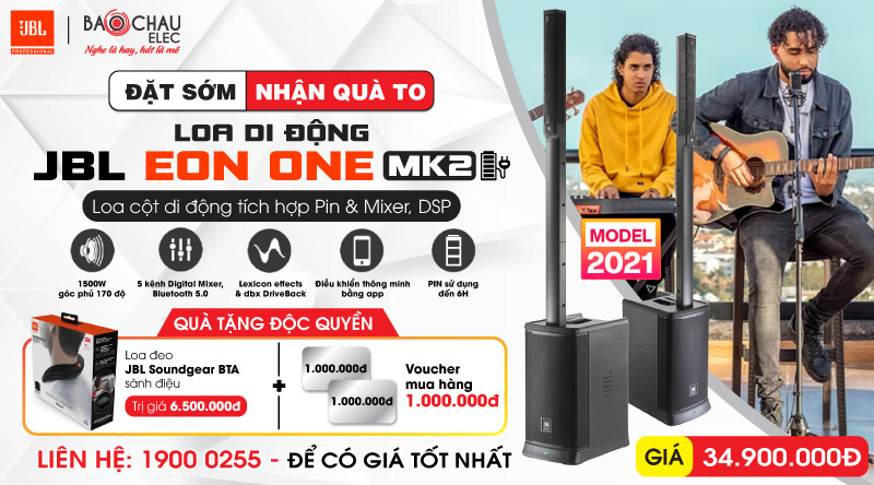Bảo Châu Elec luôn cập nhật những sản phẩm mới nhất trên thị trường âm thanh giúp khách hàng nhanh chóng sở hữu, tiếp cận những model âm thanh hiện đại nhất. Theo đó là chương trình khuyến mại hấp dẫn dành cho khách hàng đặt trước trước Loa di động JBL Eon One MK2 với những quà tặng vô cùng giá trị.