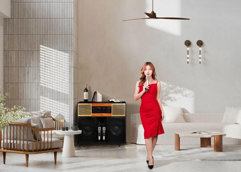 Đi kèm với Home Station 10 là 2 micro không dây cao cấp. Người dùng chỉ cần kết nối Bluetooth giữa loa với smartphone, tablet là có thể bắt đầu một buổi karaoke tại gia một cách nhanh chóng. Hơn nữa, chiếc micro đi kèm cũng đảm bảo kết nối tín hiệu luôn ổn định giúp trải nghiệm không bị ngắt quãng. Không chỉ vậy, Home Station 10 còn cho phép tuỳ chỉnh các thông số như Bass, Treble, hiệu ứng echo/delay/repeat tương tự một dàn karaoke thực thụ.
