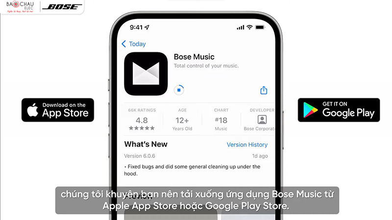 - Để hoàn tất quá trình thiết lập và khai thác tối đa tiềm năng của hệ thống S1 Pro+, Bose khuyến nghị người dùng tải xuống ứng dụng Bose Music từ cửa hàng ứng dụng Apple App Store (dành cho iOS) hoặc Google Play Store (dành cho Android).