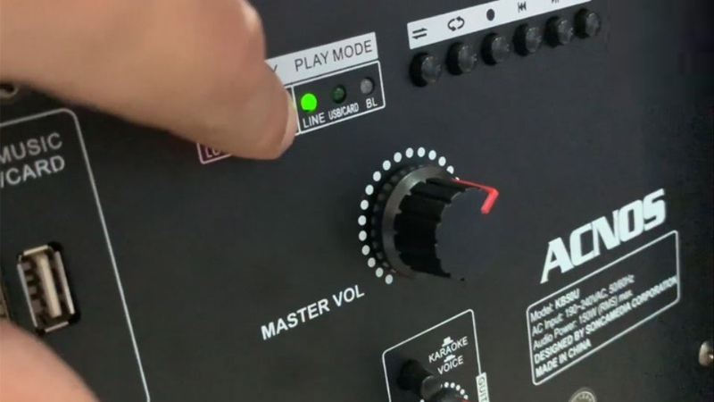 Đầu tiên hãy khởi động loa kéo. Nhấn nút "MODE" trên bảng điều khiển. Quan sát màn hình LED, khi nó hiển thị chữ "Line", bạn đã thành công.