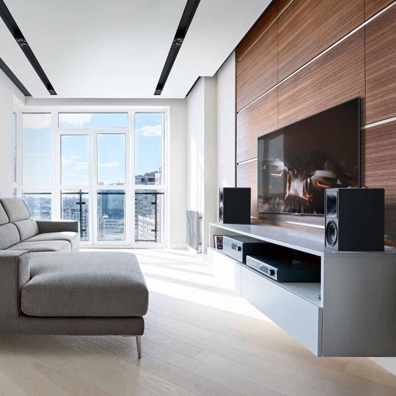 Trong khi đó, chất lượng âm thanh của loa được đảm bảo bởi cấu hình sử dụng tweeter titanium 2,54 cm bố trí ngay trên họng kèn Tractrix - một thiết kế thường gặp ở loa Klipsch, 1 woofer đường kính 11,43 cm và mạch DSP amplifier hiệu suất cao, hỗ trợ tín hiệu âm thanh hi-res (tối đa 24-bit/192kHz) ở mỗi bên loa.