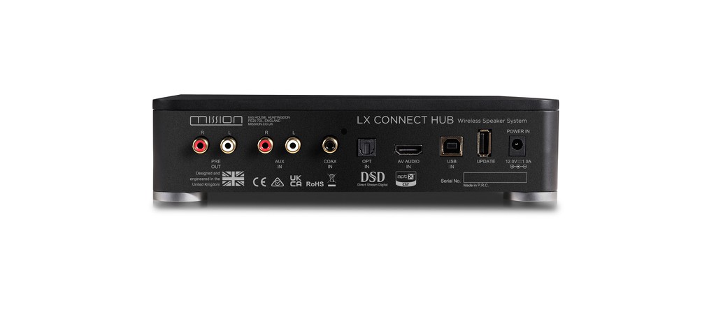 Hệ thống loa không dây Mission LX-Connect sở hữu một đầu Hub được tích hợp chip DAC chất lượng cao ES9018K2M. Thiết bị này có khả năng truyền tải tín hiệu hi-res audio tối đa lên đến PCM 384kHz / DSD256 từ nguồn phát đến đôi loa qua sóng không dây 5.8 GHz với khoảng cách đạt 20m.