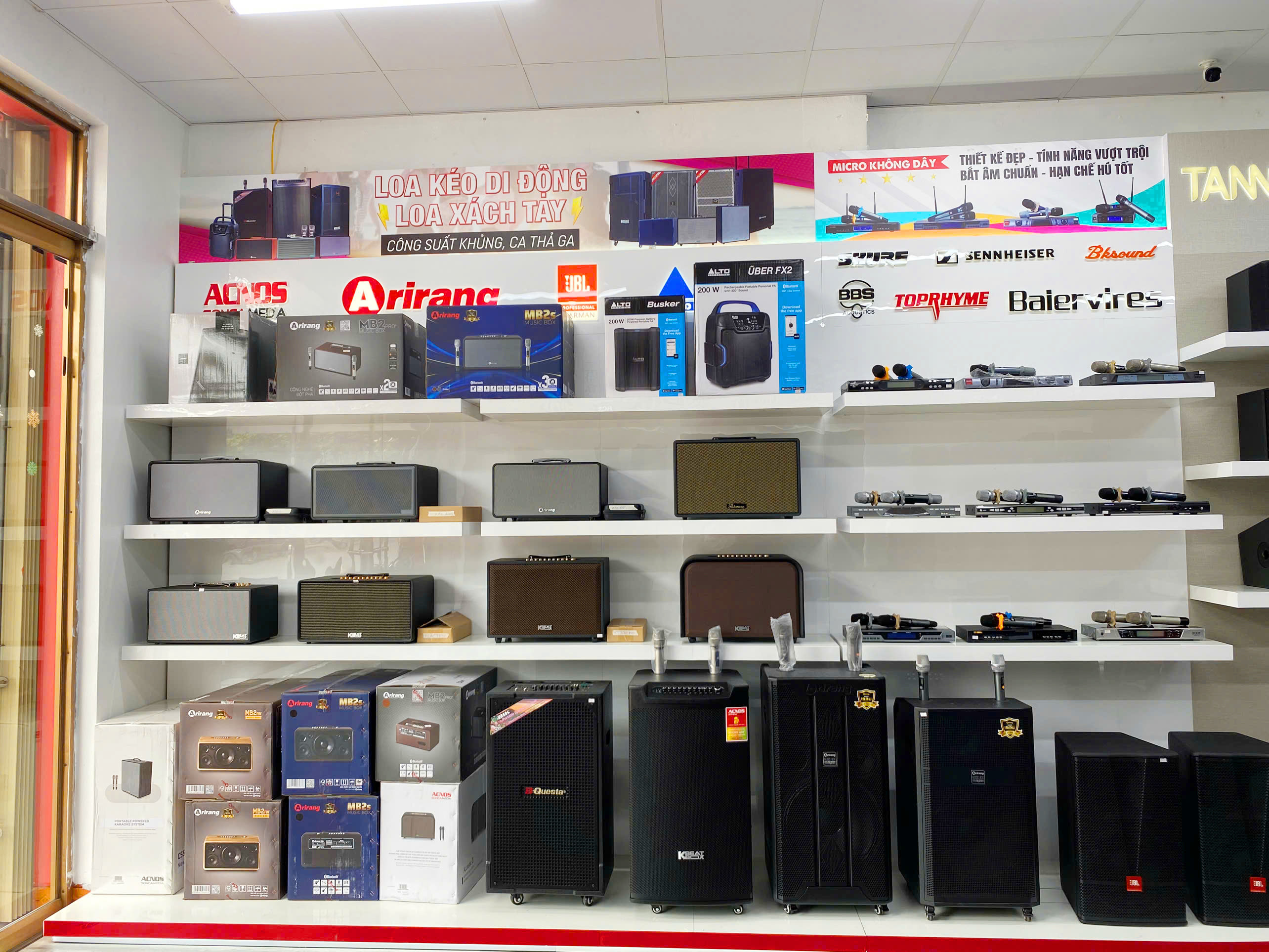 Tại đây, chúng tôi trưng bày hàng trăm mẫu loa xách tay, loa kéo di động chính hãng đến từ Acnos, Dalton, BIK, JBL, Bose, Electro-Voice... có đầy đủ giấy tờ CO/CQ chứng minh nguồn gốc. Đội ngũ chuyên viên kỹ thuật của Bảo Châu Elec sẽ hỗ trợ bạn setup tần số, căn chỉnh Echo/Reverb chuẩn giọng và cam kết chế độ bảo hành/thay thế linh kiện dài hạn nhất thị trường.