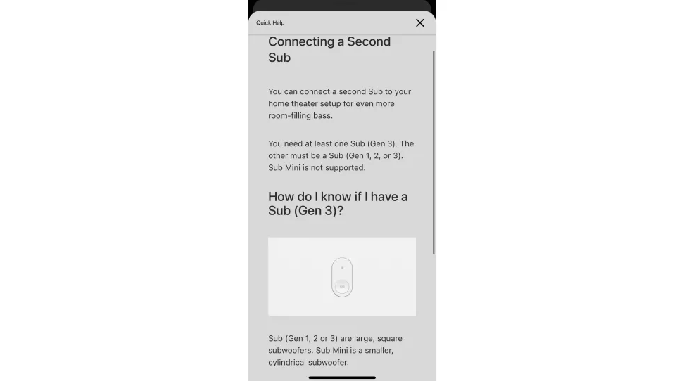 Bên cạnh đó, ứng dụng còn cho người dùng biết rằng việc thêm cùng lúc 2 chiếc Sub Mini vào hệ thống âm thanh Sonos là điều không thể. Do đó, chiếc Sonos Sub hiện tại vẫn là giải pháp hợp lý cho những ai thích tiếng bass dày và uy lực.