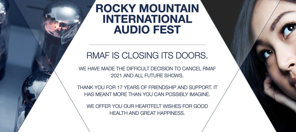 Theo như thông báo chính thức từ Giám đốc sự kiện Marjorie Baumert và Giám đốc điều hành Marcie Miller mà chúng tôi nhận được: “Triển lãm Rocky Mountain Audio Fest chính thức dừng vĩnh viễn. Chúng tôi đã rất hân hạnh khi được phục vụ cộng đồng các chuyên gia lĩnh vực âm thanh và học hỏi được rất nhiều điều từ họ. Xin cảm ơn vì tình bạn và sự hỗ trợ vô cùng nhiệt huyết và ý nghĩa trong suốt 17 năm qua. Chúng tôi, toàn thể đội ngũ của Rocky Mountain Audio Fest xin gửi đến mọi người lời chúc sức khỏe, hạnh phúc chân thành nhất.”