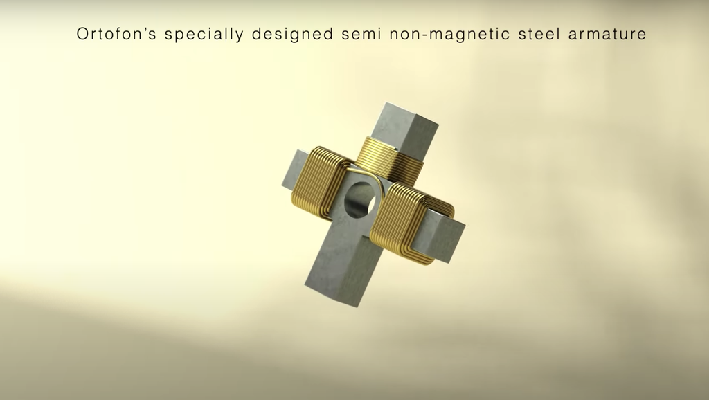 Về cấu trúc bên trong, các cuộn dây được chế tác từ vật liệu đồng OFC 6NX mạ vàng - giúp tín hiệu âm thanh luôn được bảo toàn trong quá trình truyền tải, mang lại chất lượng âm thanh chính xác nhất. Đồng thời, phần ứng của đầu kim được thiết kế đặc biệt từ một hợp kim kim loại có ít từ tính hơn so với sắt thông thường, mang lại lợi ích đáng chú ý cho độ động của hộp mực. Với hệ thống nam châm, Ortofon đã sử dụng công nghệ FSE (Field Stabilising Element) giúp ổn định lại từ trường, bất kể sự chuyển động của phần ứng, giúp tăng độ chi tiết của bản nhạc và giảm tối ưu tạp âm.